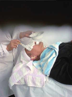 談話中,于振海聊到自己,他今年67歲,之前是北京一家醫院的醫生,退休后在此行醫。針刺做完后不久,于振海開始給李先生做面膜,做面膜的過程持續了半個小時。
