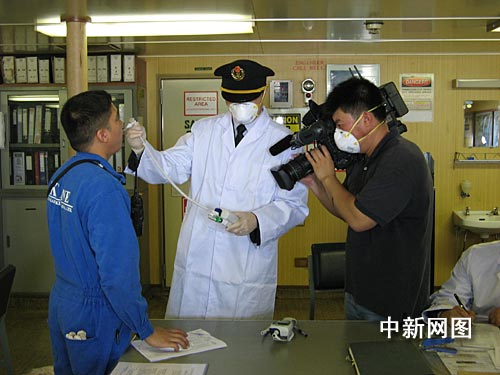 外高橋邊檢站民警告訴記者,巴拿馬籍“曼哈頓橋”輪于昨天(5月5日)上午8時(shí)靠泊外高橋碼頭。該輪由于途徑甲型H1N1流感疫情較重的美國,且船上有一名菲律賓籍船員體溫異常,邊檢和衛(wèi)檢啟動(dòng)聯(lián)動(dòng)應(yīng)急預(yù)案,在第一時(shí)間對其進(jìn)行了專門檢查和檢疫。