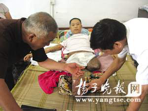 左邊臀部以下、右邊膝蓋以下已被截肢,全身都是燒傷的疤痕,但躺在床上的葛小勇并沒有像記者想象中的那樣頹廢,就在前往他家回訪的趙主任為他換藥讓他感覺疼痛時,他報以家人的卻是玩笑似的語言:“趙主任別把我當是你,我怕疼”。簡簡單單的一句話讓屋內所有人都相視而笑。