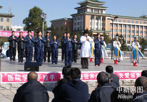 表演中,患者們的舞蹈和歌聲讓臺下的觀眾掌聲不斷,在演出最后,患者們和學生合唱的《感恩的心》,把整場演出推向了高潮,許多觀眾都激動地流下淚水。同時,師生們又向長春市心理醫院的精神疾病患者捐獻了百余件衣物。