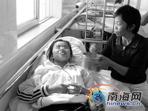 11月17日下午,記者在海南省農(nóng)墾總局醫(yī)院神經(jīng)內(nèi)科病房看到,阿霞的媽媽、姨媽和同學(xué)都在一旁照顧阿霞。阿霞目光呆滯,嘴里不時(shí)地喃喃自語(yǔ)說:“我好奇心強(qiáng),我要找知音陪我去逛街,我有好多話要說,我想找回我的記憶……”阿霞的媽媽和同學(xué)告訴記者,阿霞讀書很刻苦,成績(jī)都排在前幾位,她一直向往重點(diǎn)高中,還夢(mèng)想著考上重點(diǎn)大學(xué),考試總想要考第一。