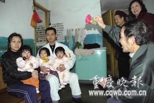 沙坪壩區(qū)的梁紅兵喜得三胞胎,娃娃長(zhǎng)得一個(gè)比一個(gè)乖,這原是件讓人很羨慕的事,但在工廠當(dāng)裝配工的他卻因難以承受高昂的撫養(yǎng)費(fèi),與待業(yè)在家的妻子廖洪整日愁眉不展。