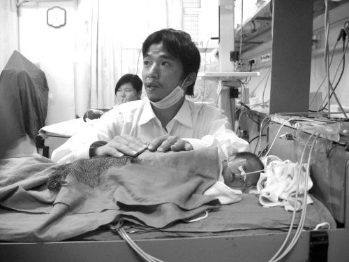 昨日上午,方秋林的兒子三次停止呼吸,據(jù)醫(yī)生介紹,孩子的情況現(xiàn)在很不穩(wěn)定,還是高危嬰兒。但是住院費已經(jīng)用完了,醫(yī)院正在催促方秋林交錢,他也在盡最大的努力……