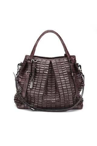 深棕暖調(diào)讓鱷魚皮的野性收斂了不少,再把這樣堅(jiān)硬的皮革整齊排列與褶皺處理,包身擁有了堆疊體積感,就像是竹節(jié)被串連在了一起一般擁有雕刻的肌理質(zhì)感。