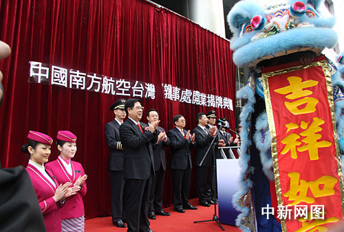 1月15日,大陸南方航空公司在臺北正式成立辦事處,成為首家在臺灣掛牌運營的大陸企業。圖為開業揭幕儀式典禮。中新社記者 陳立宇 攝