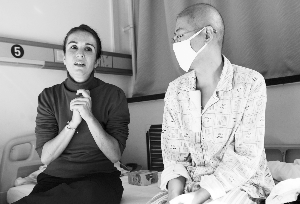 “他是我第一個中國朋友!弊蛉障挛,307醫(yī)院的骨髓病房,吳麗雅和劉江濤坐在病床邊,說起他們相識的經(jīng)歷。