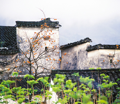 徽居是徽州最重要的符號,是整個徽州田園精神的具象和詮釋,如今在深山坳里一個個聚族而居的龐大古村落就是當年徽商艱辛打拼的歷史遺跡,簡練的門庭和極盡奢華的內飾是徽商這一特殊商幫的精神氣質———遵循傳統,不鋪張,不張揚,內斂而儒雅,他們是曾經富可敵國的財富英雄。鱗次櫛比的馬頭墻代表著一種秩序和傳承,耕讀文化和亦儒亦商的傳統至今根深蒂固,徽州人家的老窗戶雕刻的亦是簡潔而文氣的冰裂紋,光線漏了進來,在屋子里投影下的是抽象的裝飾。黑、白、灰的色調是永不過時的經典。最愛屋后幾株自生自長的野柿,秋風吹得葉兒盡落,它們就這么無遮無攔,熱熱鬧鬧地掛著一樹的小紅燈籠,映襯在斑駁的馬頭墻里,煞是喜人,主人家靦腆而好客,悶聲不響地拎個竹竿兒,敲幾個下來,落在圍兜里,讓我們自己拿,咬在嘴里,絲絲甜糯就慢慢潤開了去……(許志偉)
