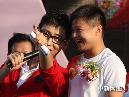 主持人現場采訪奧運冠軍龍清泉