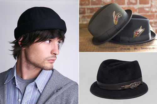順時針, 左起: Urban Outfitters 羊毛便帽, $28; Rag & Bone 豬肉餅帽, $150; Victor Osborne Roland 帽子, $275.