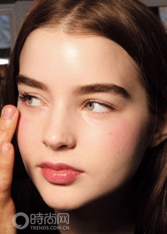 光澤感的妝容最容易突出和修飾面部輪廓,為了讓臉部線條更加完美,不妨使用不同色調粉底調配出自然日曬后的健康小麥色,然后用粉刷上妝。為了增強效果,不妨把古銅色均勻地涂在臉上。最后在兩頰和臉部輪廓掃上少許柔和的橘色,再以粉底刷加以融合,打造出健康迷人的輪廓。