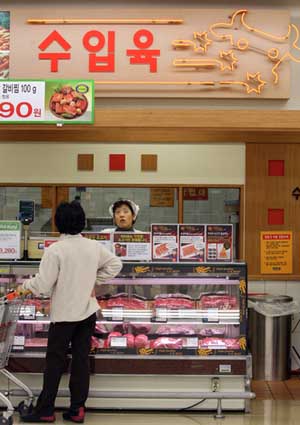韓國(guó)大型超市開始出售美國(guó)進(jìn)口牛肉(圖)