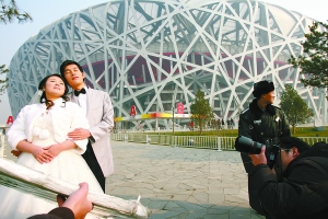 “地點(diǎn)什么的不重要,只要我倆能手牽手,一起走到老。”昨日,鄭廣明與身穿婚紗的妻子賀晨曦手牽手出現(xiàn)在鳥巢外,拍攝婚紗照。來自牙買加的游客戴文聽說了他倆的感人故事后,提出和二人合影,并送上他的祝福。