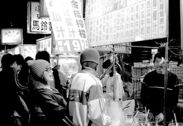 先有廟后有市,臺(tái)北最古老的幾個(gè)夜市都是如此。但臺(tái)灣夜市的真正繁榮,還要追溯到上個(gè)世紀(jì)70年代的石油禁運(yùn)危機(jī)。就像如今席卷全球的金融危機(jī)一樣,當(dāng)時(shí)西方國家一片愁云慘淡,紛紛取消訂單,依賴出口的臺(tái)灣大受打擊,外銷廠商吃盡苦頭,紛紛倒閉。為了求生存,尋找東山再起的機(jī)會(huì),自然而然,出口轉(zhuǎn)內(nèi)銷,把退貨拿到夜市地?cái)偞笈馁u,沒想到大受歡迎,從此,吃喝之余,逛夜市買外銷退貨品、仿冒品,就成了臺(tái)灣人乃至外地游客的一大樂趣。