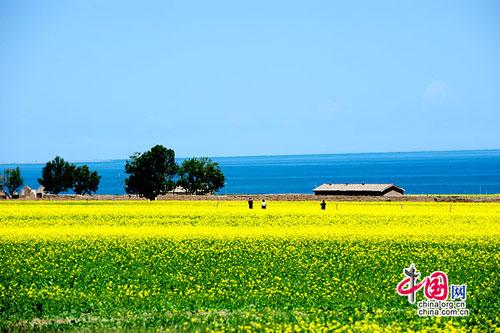 站在日月亭兩山間的路上,便可眺見(jiàn)青海湖,湛藍(lán)的粼粼波光和湖岸邊,一望無(wú)際綿綿起伏不盡的草場(chǎng)。轉(zhuǎn)瞬之間來(lái)到青海湖,這里,水映天色,微風(fēng)清揚(yáng),湖水碧藍(lán),黃鴨、鸕鶿群群。各色水鳥,拍翅翻飛,戲水鳴唱。