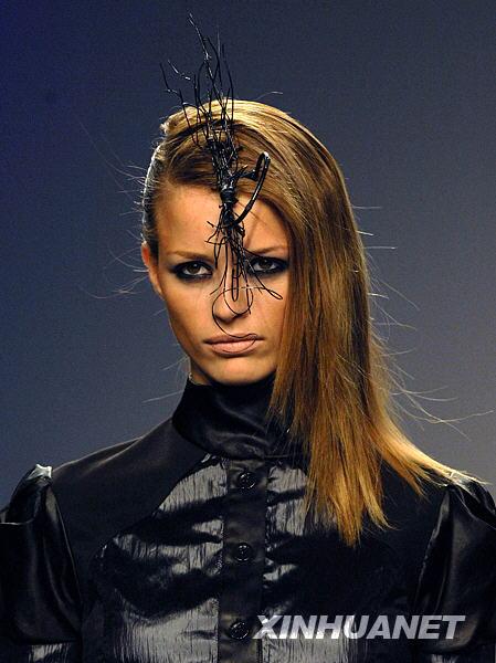 在第49屆馬德里時裝周上,模特頭部的各種精心修飾使得時裝設計師的作品得到了更好的詮釋。新華社記者陳海通攝