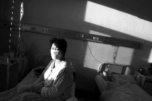 昨日下午,北京大學人民醫院血液病研究所二樓的病房里,趙麗鳳戴著口罩。