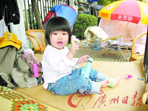 梁女士說,為了兩歲半的小女兒能夠順利入讀,她早早就來到幼兒園門外,扎起小帳篷,開始了長達7天的守候,現(xiàn)在已經(jīng)守了5天了。雖然很辛苦,但梁女士認為,只要為了孩子,付出都是值得的。梁女士還告訴記者,她碰到一位“80后”的媽媽說,“只要孩子能上好學校,別說一星期,我就是排一個月隊也值了!