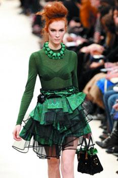 其實八十年代也好,六十年代也好,那些浮華奢糜的年代已經離我們很遠,我們只能在衣服里懷湎。而金融危機未曾離開已經被問及第二波。所以在這個時候發布的巴黎時裝周,自然敏感而地著絲絲的悲哀。被一眾看好的Balmain,可以觀望到這個秋冬被視作女性權力象征的肩墊,非但沒有收斂之勢,更猶如中國古建筑的飛檐般往上翹。但最震懾人心的還是年年有驚喜的Prada,在一片肅殺之意下,冷調里的彩被看作重生的希望,設計師的靈感來自城郊那片霧色,但最后成就了所有人內心被燃起的希望之光。而依舊快樂的Louis Vuitton,而最美的還是Balenciaga,還是觀望下半年經濟如何,我們選擇低調還是奢華吧。(九姑娘)