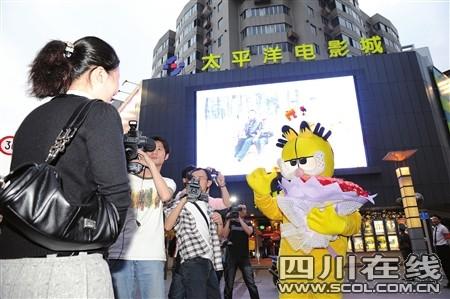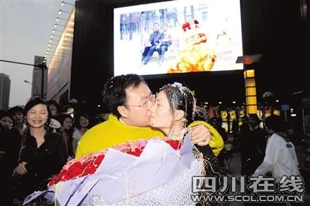 昨晚7點,應男友的邀請,鄭小姐來到成都春熙路商圈的青年路太平洋影城準備和男友一起看電影。剛走到影城門口,鄭小姐突然發現:影城門口的大屏幕上,居然正在播放由自己和男友平時照片所組成的短片。沒等鄭小姐回過神來,身穿加菲貓造型服裝的男友周先生已捧著大束玫瑰走上前來,單膝跪地:“嫁給我吧。”
