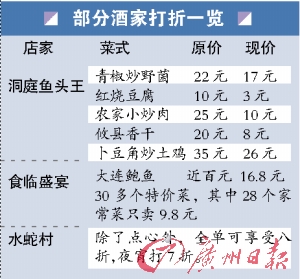 “最近上酒樓吃飯便宜了。”家住海珠區的李小姐告訴記者,下渡路的渝風樓,原先賣38元的酸菜魚、跳水蛙都降到18元,經常看到幾個年輕人就圍著兩大盤這樣的菜式,再叫個飯就可以完成一餐,很劃算。