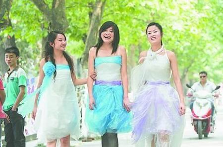 昨日中午,成都理工大學第四教學樓旁擺起了展臺,七名身著用藍、黑、白相間的塑料薄膜做成的“塑料時裝”的女學生登場,引來了陣陣掌聲。據介紹,這些學生所穿的“塑料時裝”全部采用日常生活中常見的塑料,通過他們自己獨立設計成衣服,向現場的觀眾宣傳環保,號召師生們盡量采用環保制品,愛護我們共同的家園。(張歐)