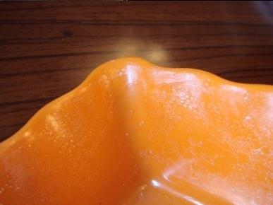 質量差的仿瓷杯,經蒸煮后變色、開裂。