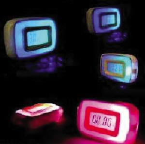 鬧鐘附帶的七彩背光燈,會在有聲音的情況下亮起來,方便晚上看時間。連續的聲音會讓它切換成不同的顏色燈光,晚上看起來相當漂亮。當然,也可以設置關閉聲控。(曾敏妍)