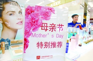 本周日,恰逢一年一度的“母親節(jié)”,北京各商家從今天開始拉開新一輪“情感促銷”的大幕。不過,記者發(fā)現(xiàn),一些打著“母親節(jié)”旗號推薦的商品,從數(shù)千元的大牌化妝袋到近千元一件的短袖T恤,遠遠超出媽媽們的心理承受范圍,讓媽媽們心疼不已;更有商家把一款“壞女孩套裝”彩妝也納入母親節(jié)禮單,著實“雷”倒了不少媽媽。