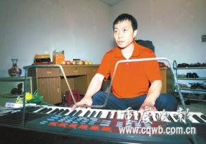 簡廣榮想起女兒,就胡亂地敲擊電子琴。 記者 張質 攝
