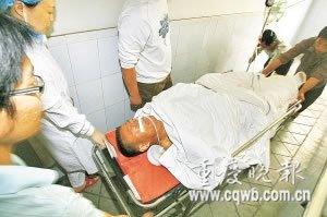 受傷的江中華被緊急送往醫院進行搶救 記者 楊帆 攝