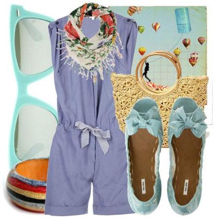 輕松的海邊復古裝扮,靛色連身工裝褲,活潑可愛,搭配雙蝴蝶結鞋子,走清新甜美風。