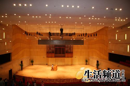 音樂廳是演出大型交響樂的專用音樂廳,可容納觀眾 800 人,具有接待世界著名交響樂團演出的能力,配有大型管風琴、 12 英尺鋼琴等大型樂器。其聲學設計、燈光系統均達到國內一流水平。   吳歆 攝影