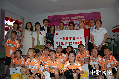 中新網6月3日電 5月30日,我國艾滋病宣傳大使、臨汾紅絲帶學校名譽校長、著名演員濮存昕和青年歌手李丹陽、中國青少年發展基金會副秘書長汪敏、寶健(中國)日用品有限公司副總裁蔡尚榮、寶健山西臨汾的代理商們等一行走進山西臨汾“綠色港灣”,為紅絲帶小學的艾滋病患兒們送去了節日的禮物和溫馨的祝福。