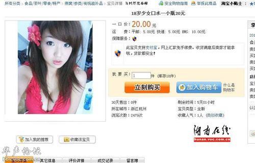 賣時間,賣青春……在創意層出不窮的當下,一店主在網上兜售美少女口水的舉動再一次“雷”倒眾人。今日,網友“ximacai”在華聲論壇發帖稱,雖然淘寶售出的商品花樣諸多,但兜售美少女口水卻還是第一次看到,令他大跌眼鏡。
