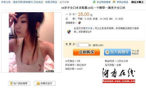 周先生稱他曾在淘寶網上開過手表店、皮夾店、食品店,但都沒有成功。前幾天在網上瀏覽貼子時,突發奇想想到賣美少女口水的點子,便掛了個鏈接,沒想到鏈接一上引來了上萬的點擊。后來淘寶網認為“賣口水”與其出售規則不符,刪除了他的連接。今天,周先生又掛上“出售少女口水采集瓶附帶美少女口水”的鏈接,記者發現,此網頁的瀏覽次數已超過了400次。