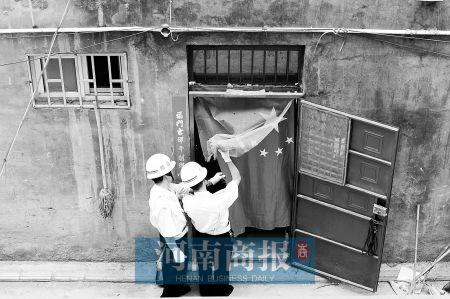 鄭州一居民將國旗掛在門口處,把國旗當門簾?“不,我家有門簾。我這是愛國呢。”吳先生說。