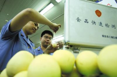 經開區某超市,工商工作人員用食品快速檢測箱檢測食品安全 記者 歐陽祖兵 攝