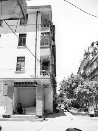女生就是從這棟民房的四樓(畫圈處)爬水管下來時,不慎從三樓(箭頭處)墜落