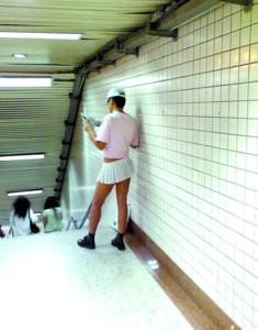 近日,一篇有關(guān)“迷你裙男”的帖子出現(xiàn)在上海幾大論壇,照片中一名男子頭戴白色遮陽帽、身著粉色T恤及白色超短裙,在軌交中山公園站內(nèi)倚著墻看報(bào),沒有正面圖片。