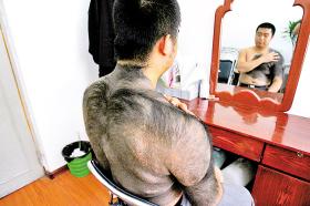 炎熱的夏天,23歲的小宋還穿著長袖衣服,熱得滿頭大汗。“不是我不怕熱,我是怕別人看到我身上的黑色‘毛坎肩’,又對我指指點點。”小宋口中的毛坎肩,其實是已經(jīng)伴隨了他20多年的黑毛胎記。