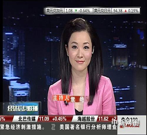 圖為章艷在央視財(cái)經(jīng)頻道主持《經(jīng)濟(jì)信息聯(lián)播》