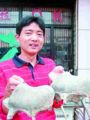 廖海兵手上拿的就是將在鞋展上出現(xiàn)的最老的木屐。李欣攝