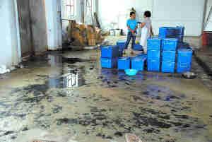 消毒車間里污水橫流。