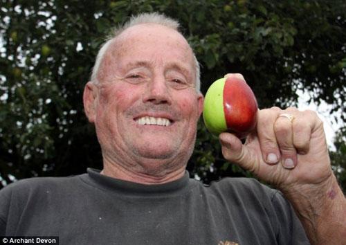 英國老人種出半紅半綠蘋果 幾率百萬分之一(圖)