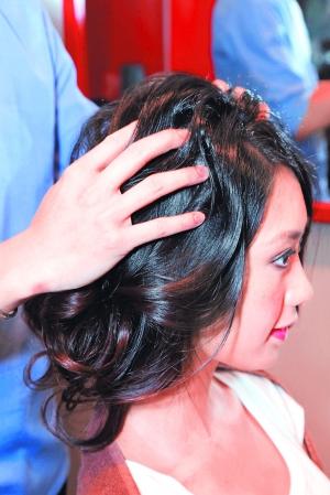 Step5涂上定型水后隨意將整個頭抓松,用手指弄散頭發會自然一些。