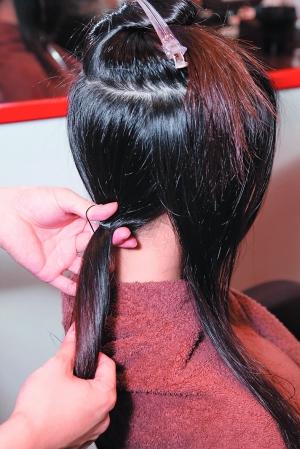 Step1夾起一束頭發在頭頂,束一條馬尾,放下兩側的頭發。