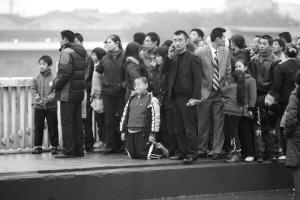 9歲的兒子跪在一旁祈求父親不要跳橋 本組圖片均由記者 胡健 攝