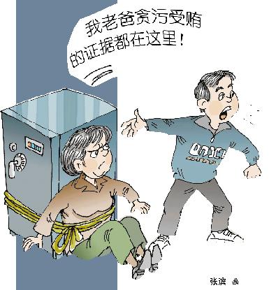 張某說:“他(劉某)辦公室里有3個保險柜,里面有他貪污受賄的證據。”張某說,她和兒子守住那3個保險柜,寸步不離,吃喝都是由親戚送到辦公室里。母子倆一直在等待紀檢、檢察等部門前來開柜,取得證據。其間,由于害怕有人來取走保險柜,張某甚至一度把自己和保險柜捆在一起。