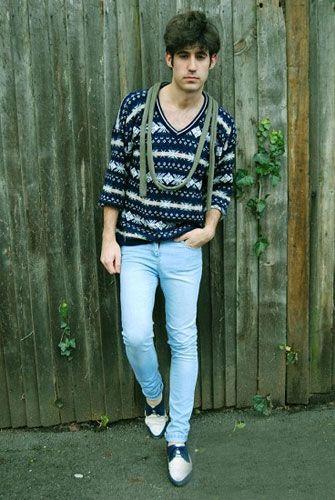1.藍色雪花毛衣 Beyond Retro 2.綠色細圍巾 River Island 3.淺藍色瘦腿褲 Replay 4.黑白復古鞋