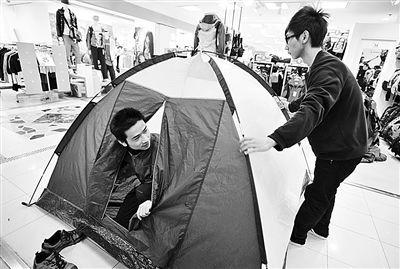 眼下不少市民外出踏青旅游,武漢各大商場的戶外用品銷售漸入旺季。21日,在漢口一商場里,營業員正忙著給顧客展示戶外帳篷。據了解,由于選購戶外用品的消費者大多是有車一族,商家在推薦時會側重于使用方便、環保型的產品。記者詹松攝影報道